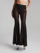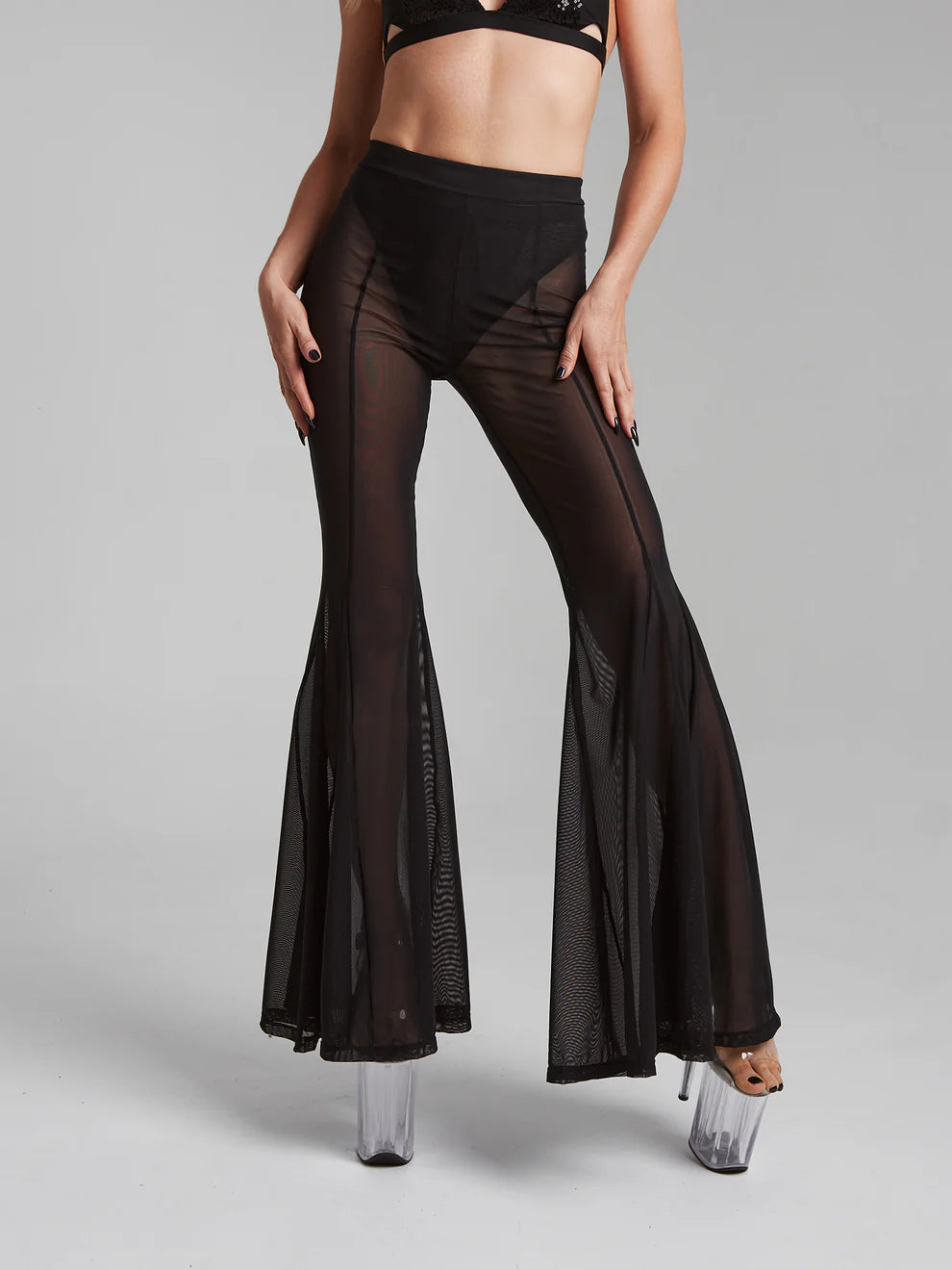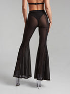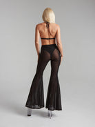 Meet your new polewear essential — ultra-soft flared pants crafted from high-quality, stretchy mesh that feels like a second skin. Half-sheer and breathable, they hug your curves and flow with every move. Featuring a flattering high waist, full flare for dramatic lines, and a cut that partly covering dancing shoe. Designed for confidence, comfort, and effortless style — on and off the pole.